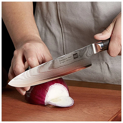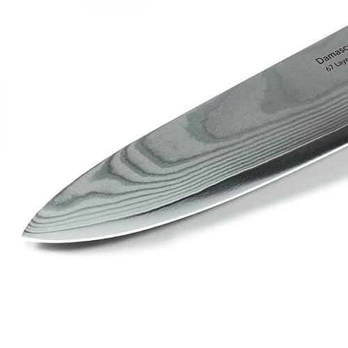 Создание ножей из дамасской стали предполагает десятки этапов обработки, благодаря чему они приобретают уникальный узор, сверхпрочность и держат первоначальный уровень остроты долгое время. В процессе создания ножи проходят нагрев, многоступенчатую ковку, скручивание, остужение и другие методы обработки. Благодаря этому в тонком лезвие сочетается 67 слоев стали, гарантирующие высокую твёрдость 60±2 HRC.