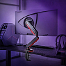 Удобную подставку для монитора можно вращать на 180°, двигать вперед и назад, поворачивать вправо и влево, вверх и вниз. Благодаря газовой пружине в конструкции кронштейна, его положение свободно регулируется одной рукой. Обеспечивается наименьшее давление на позвоночник при ее использовании. Матовый корпус оснащен двумя USB-портами, подсветкой, а его основание не займет много места на рабочем столе.