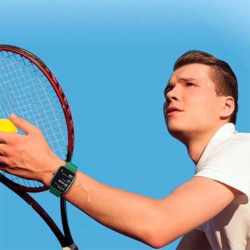Гаджет обладает стильным современным дизайном с округлыми формами. Его дисплей размером 1,69 дюймов оснащён 2,5D стеклом, через которое отображается яркое, четкое и насыщенное изображение. Разнообразие циферблатов позволяет выбрать индивидуальный дизайн. Корпус часов весит менее 40 г, он имеет защиту от воды IP68. Устройство поддерживает 30 спортивных режимов для повышения результативности тренировок. Оно отслеживает качество сна, пульс, количество кислорода в крови, женское здоровье, проводит стресс-тест. В экономно режиме девайс может работать до 30 дней.
