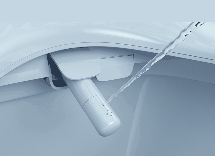 Кран для слива выполнен из АБС-пластика, и также может регулироваться по мощности напора. Также, кроме основных систем, есть функция биде. После смыва автоматически включается самоочистка, такая же настраиваемая как остальные системы, и с помощью воды и воздуха приводит устройство в чистоту.